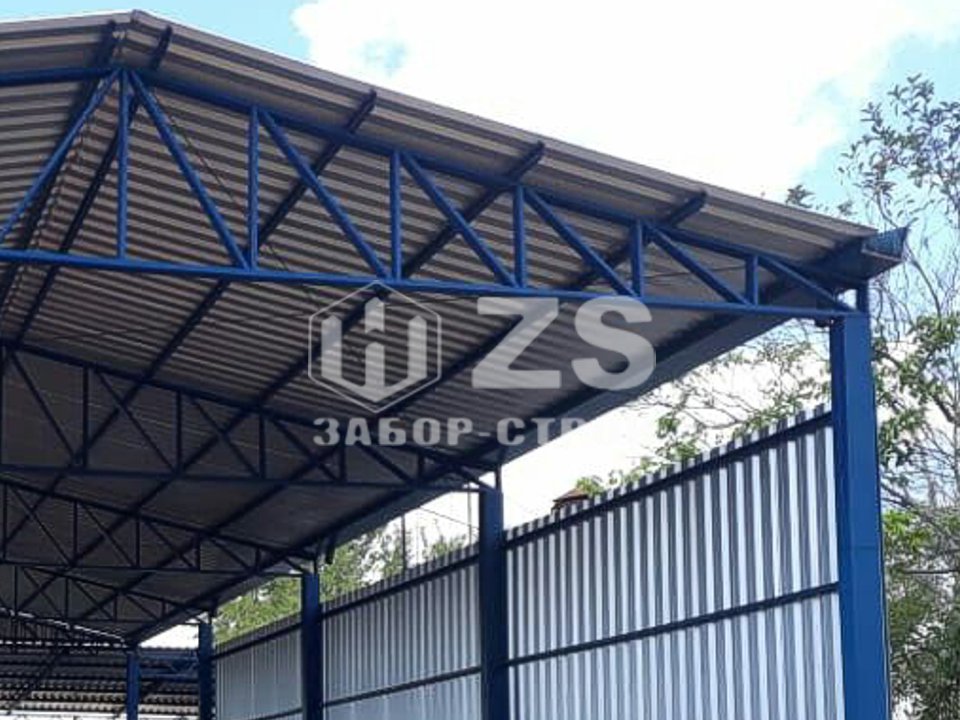 Стандартные характеристики каркаса навеса: столбы 80х80х3мм.